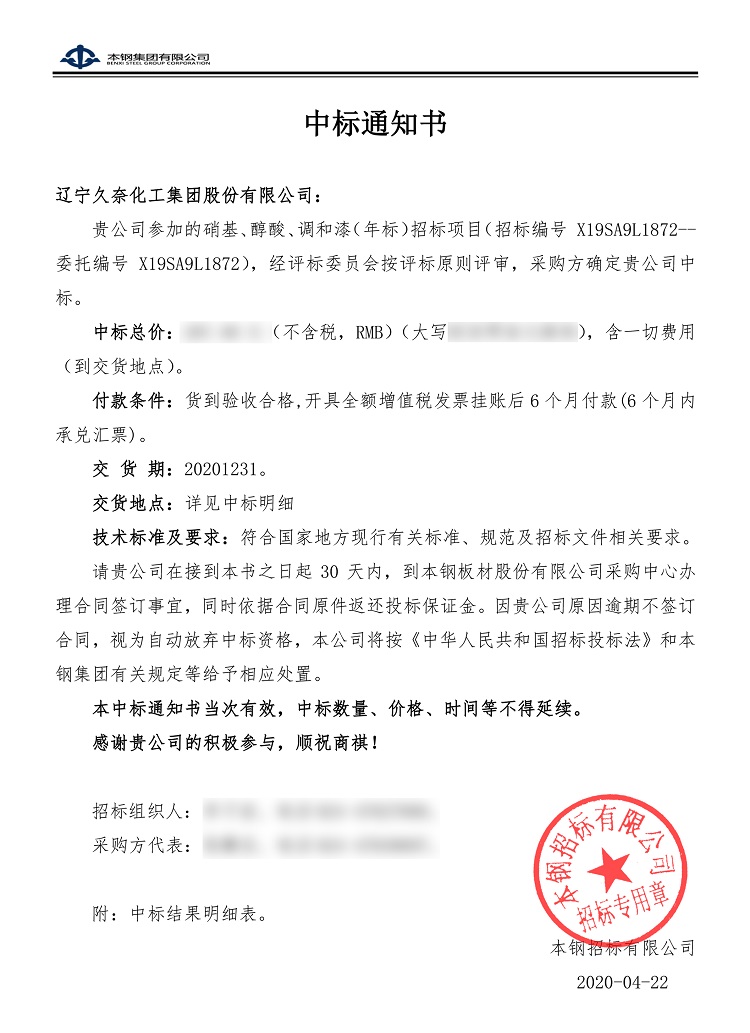 發布來源:本鋼中標通知書